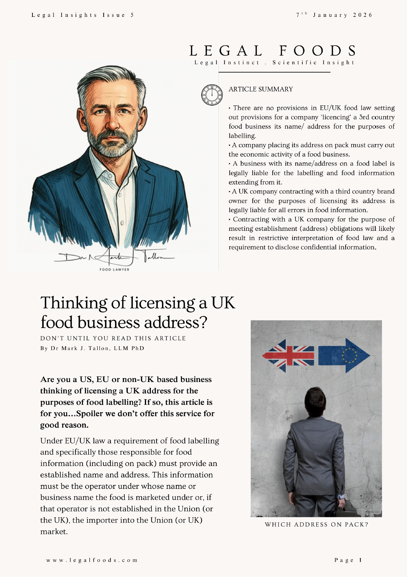 Then you must have an established UK address on pack and linked to the provision of food information. In this months 'Legal Insights' we cover the pros and cons of the current trend in licensing a name and address from a UK business!
